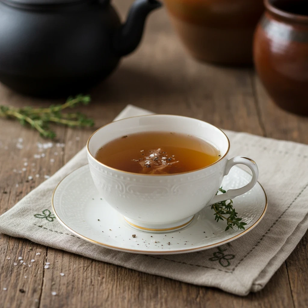 - 3Add boiling water to the jar until the beef tea reaches your desired strength. Season with salt and pepper to taste.
