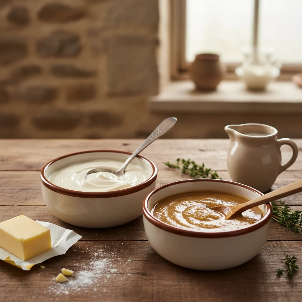 A foundational recipe for creating a roux, the base for many classic sauces. Learn how to make both white and brown roux.