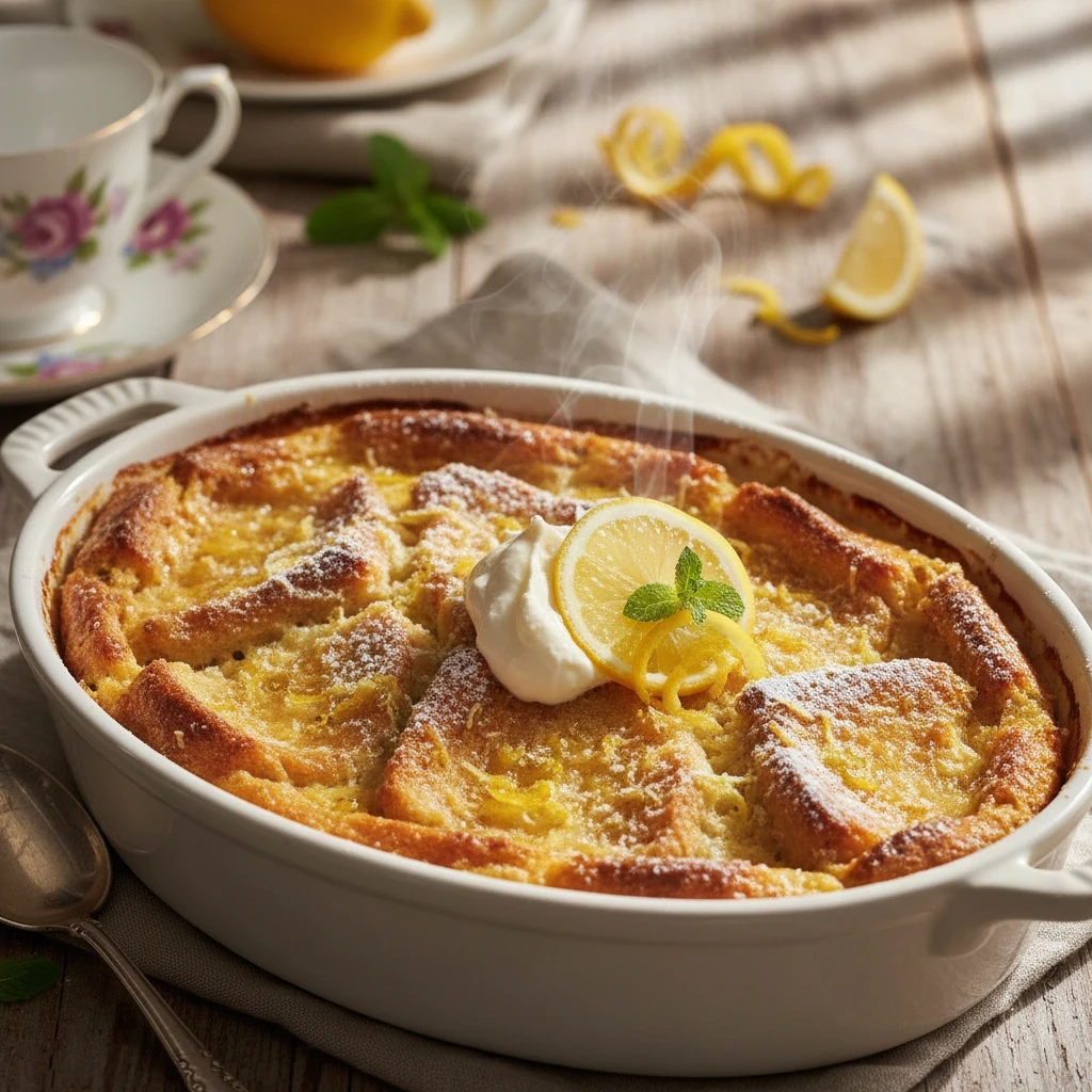 A simple and comforting bread pudding with a bright lemon flavor. Perfect for using up stale bread.
