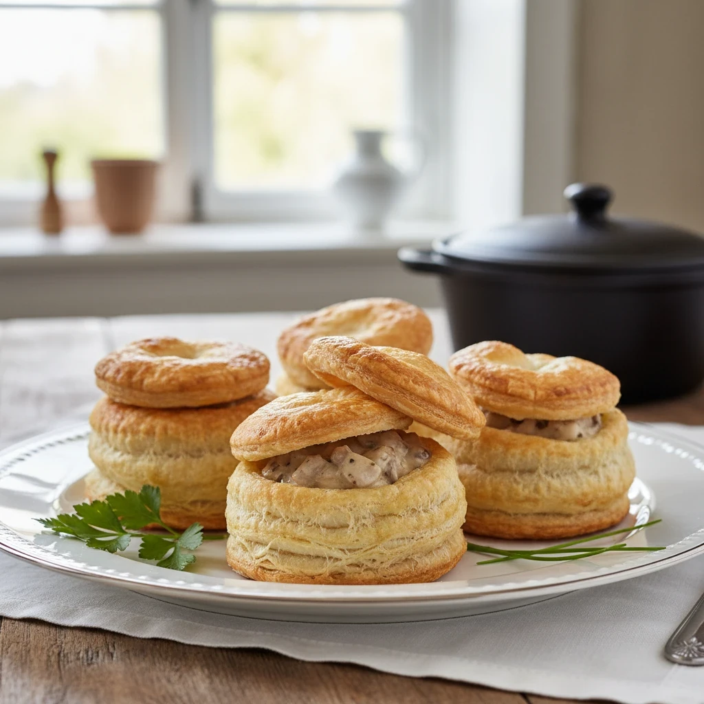 Classic puff pastry patty shells, perfect for savory fillings.