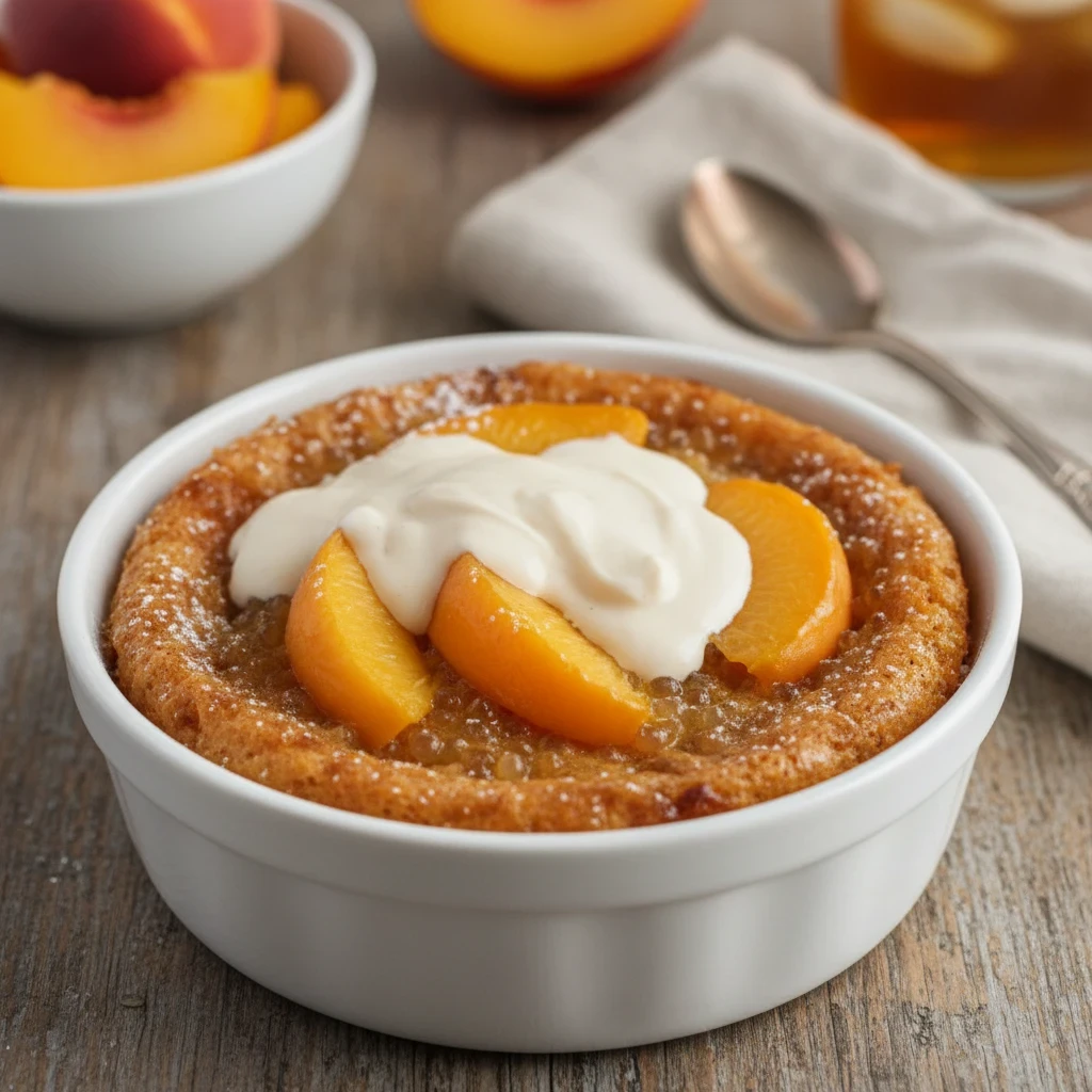 A classic dessert featuring peaches and tapioca, baked into a comforting pudding. Served with a creamy sauce.