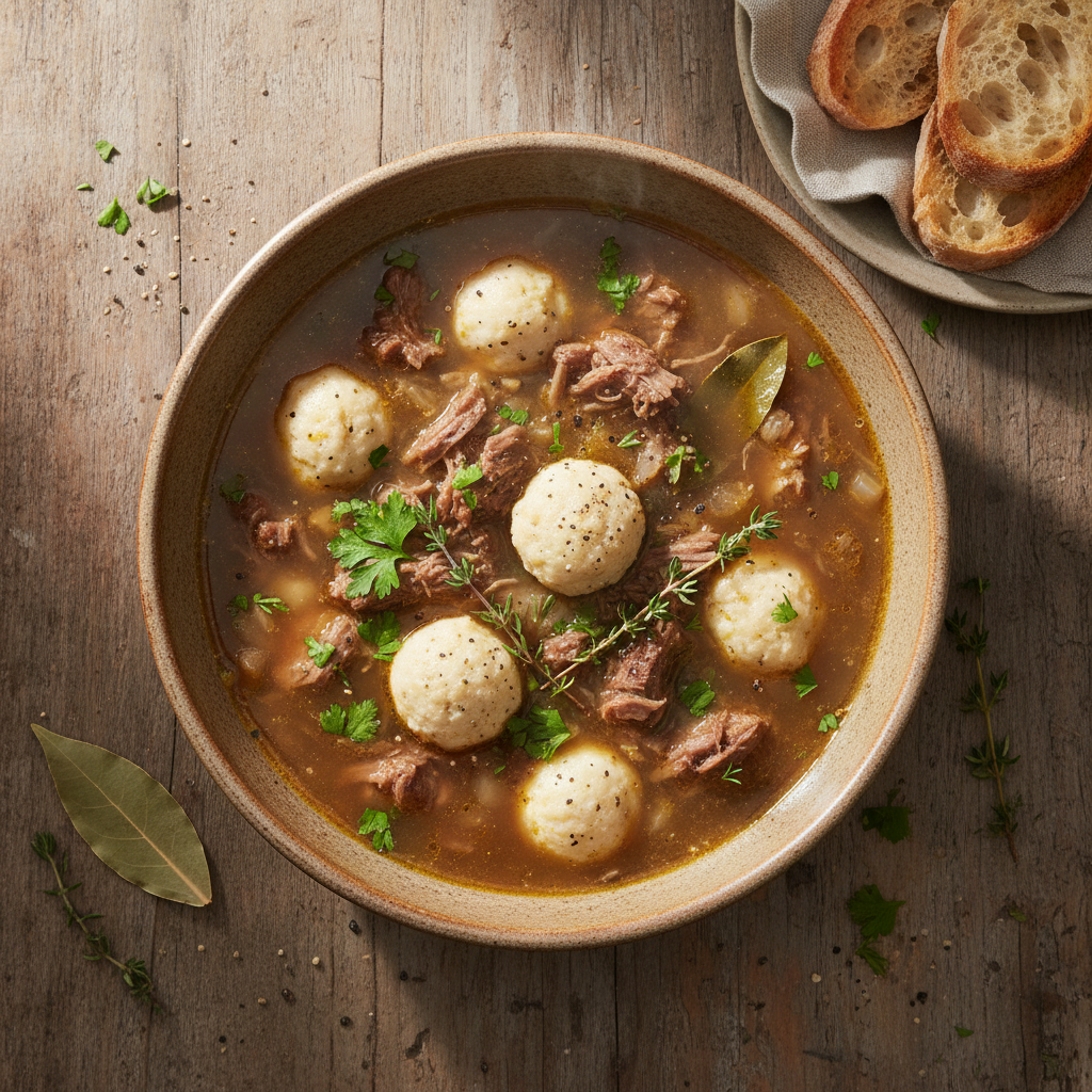Shin of Beef Soup with Forcemeat and Egg Balls