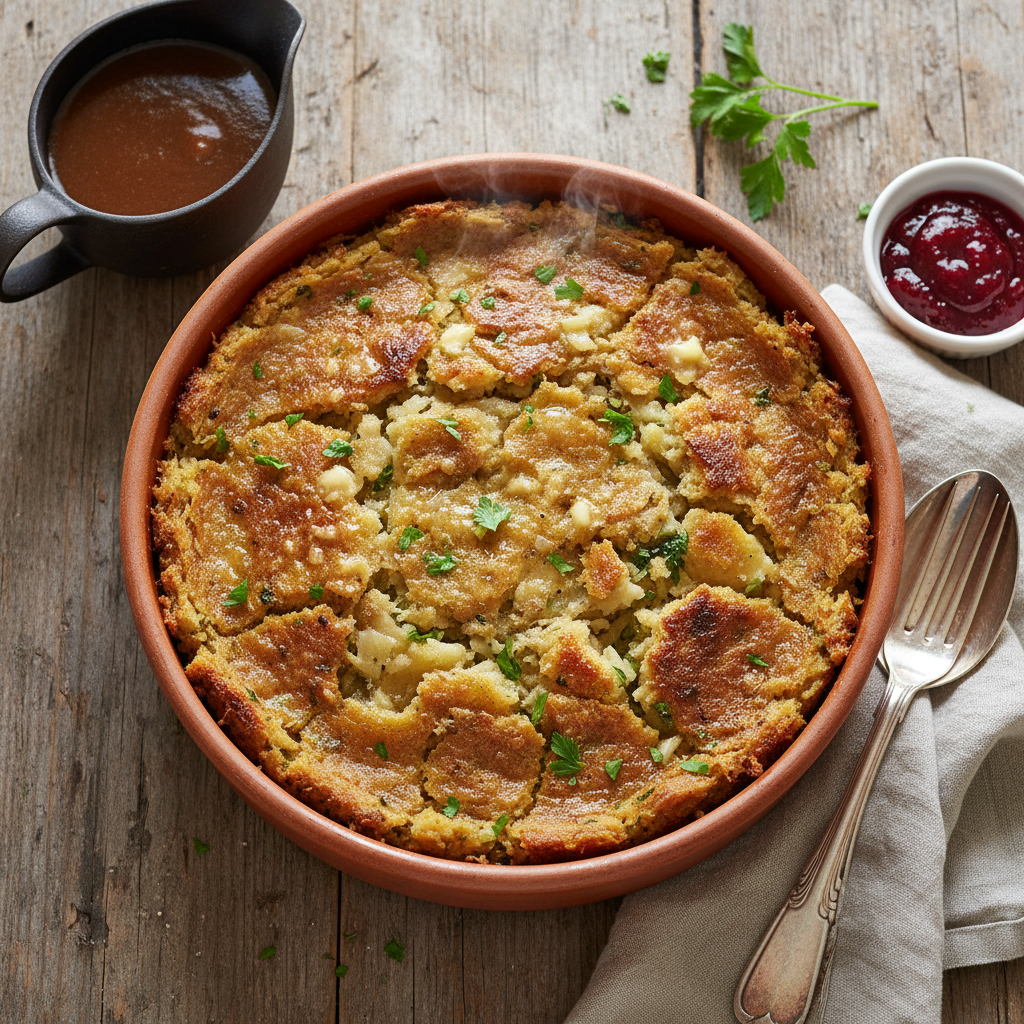 A unique Victorian-era stuffing combining mashed potatoes with olives, butter, and breadcrumbs. Perfect for chicken, turkey, or other poultry.