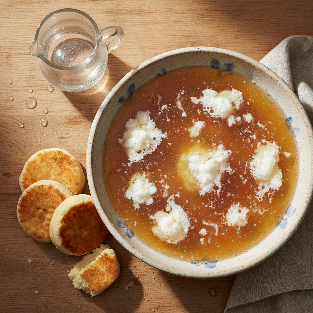 A traditional method for clarifying sugar syrup using egg whites to remove impurities, creating a clear syrup that can be used for preserving fruits or making candy. This technique produces a professional-quality sugar syrup suitable for confectionery work.