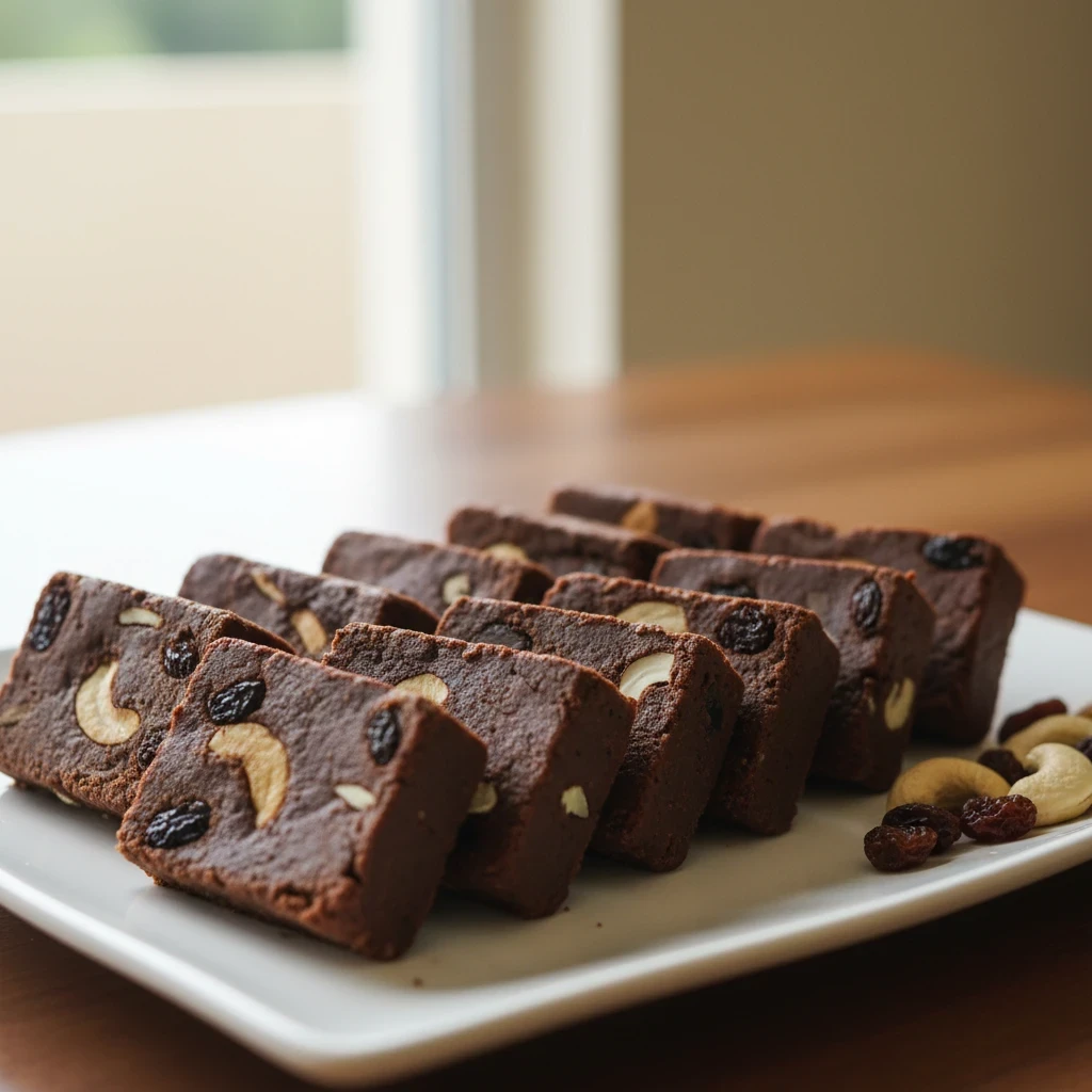 - 4Add the cashews and raisins to the sugar syrup, followed by the cocoa and milk powder mixture. Stir thoroughly to ensure a smooth, lump-free consistency.