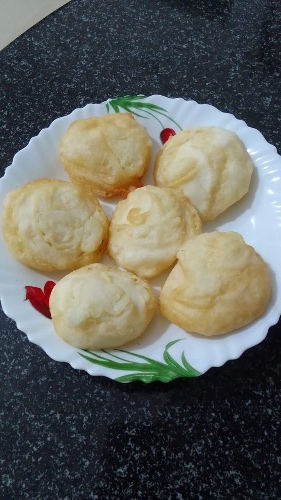 - 4Heat vegetable oil in a deep pan over medium flame. Using a large spoon, pour a portion of the batter into the hot oil. Cook until the pathiri puffs up and turns light golden brown, flipping once to ensure even cooking.