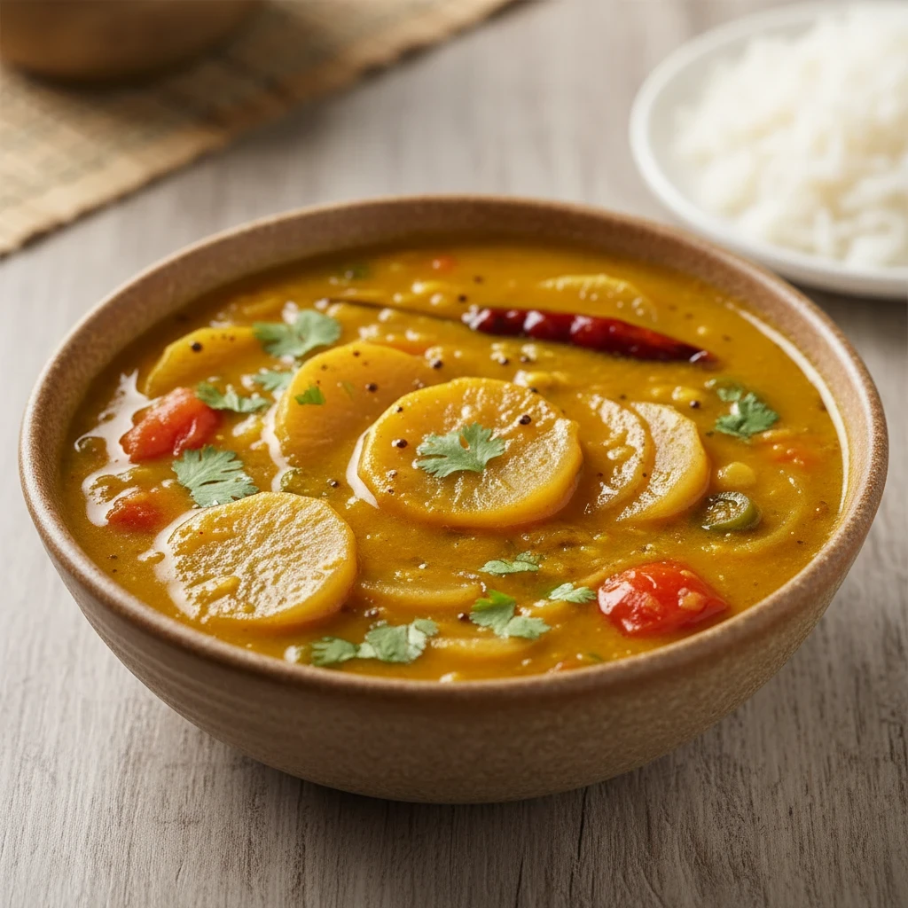 - 8Optionally add jaggery. Add the cooked dal to the mixture and let it boil until the radish is tender.